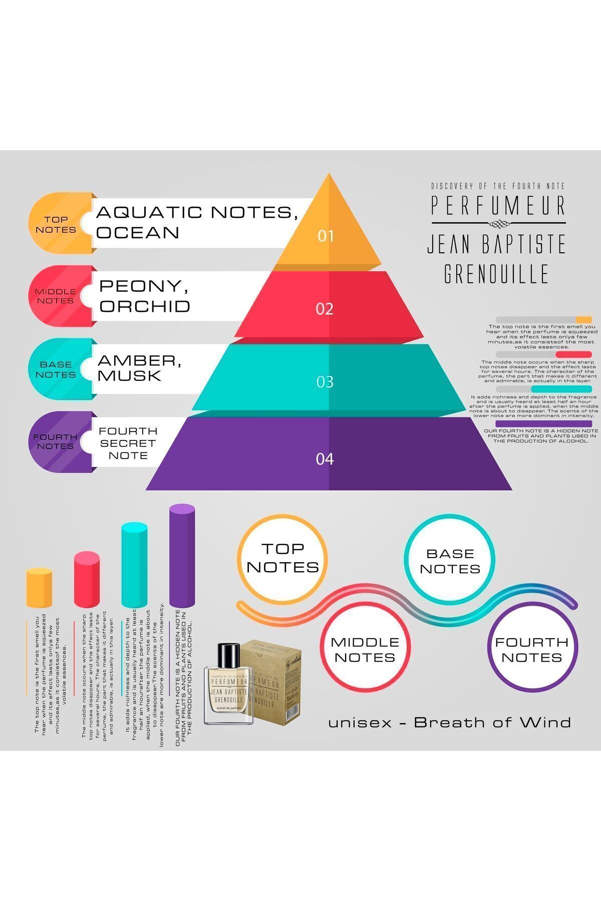 Her JBG parfümünde olduğu gibi, Breath of Wind %30-40 esans oranı ile üstün kalıcılık sunar. Tende 12 saat, kıyafetlerde 48 saate kadar kalıcıdır. Şişelenmeden önce 90 gün boyunca meşe fıçılarda dinlendirilerek olgunlaştırılır. Ayrıca JBG’nin farkı, dünyadaki çoğu parfümden farklı olarak 4 nota sistemine sahip olmasıdır; çünkü kullanılan alkol dahi marka tarafından üretilmektedir.