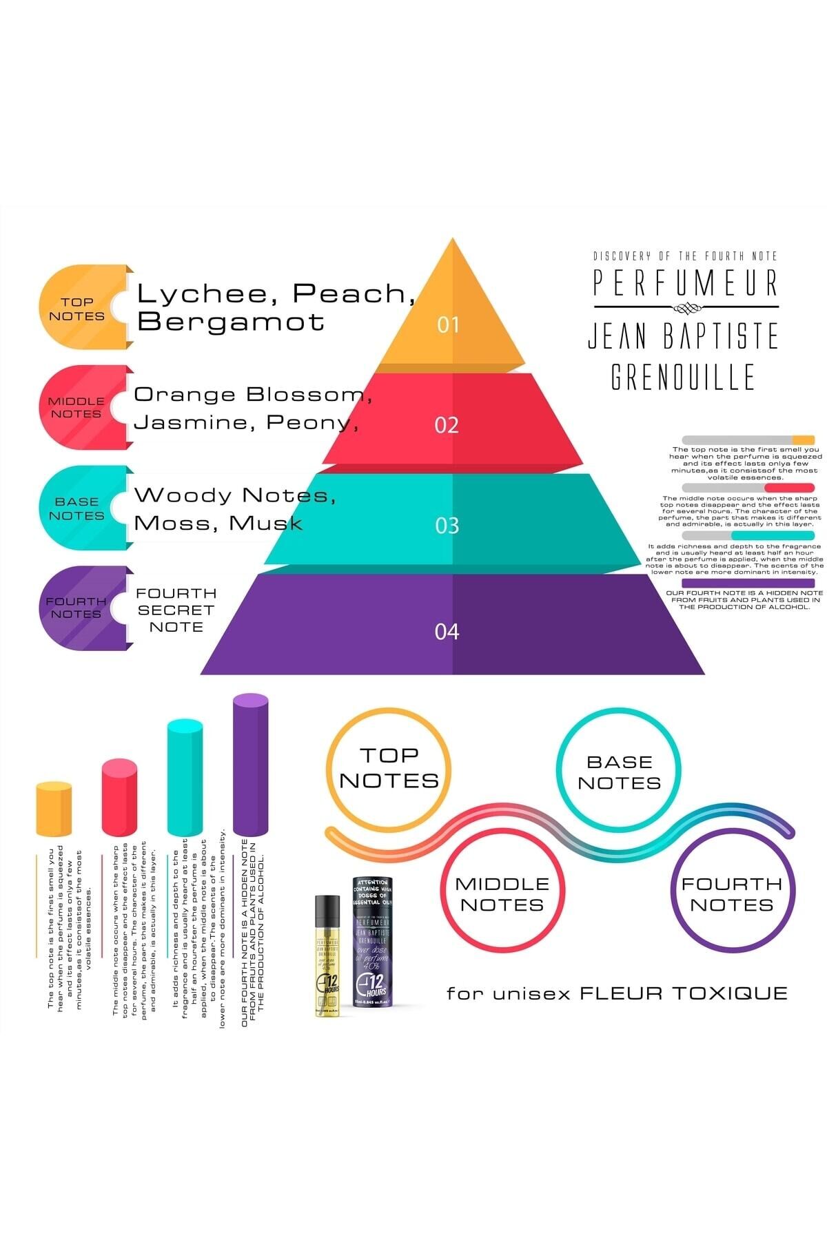 Fleur Toxique, doğanın gizemli gücünü şişenin içine hapsetmiş bir unisex başyapıttır. Çiçeksi ve meyveli esintilerin masumiyeti ile odunsu notaların derinliğini harmanlayan bu koku, hem feminen hem de maskülen çizgileri bir araya getirir. Açılışta bergamotun ferahlığı, liçinin tropikal tatlılığı ve şeftalinin zarif dokunuşu sizi bambaşka diyarlara taşır. Orta notalarda yasemin ve şakayık, portakal çiçeğiyle buluşarak duyusal bir bahçe yaratır. Son katmanda ise odunsu notalar, yosun ve misk, parfümün kimliğini güçlendirerek ona zamansız bir karakter kazandırır.