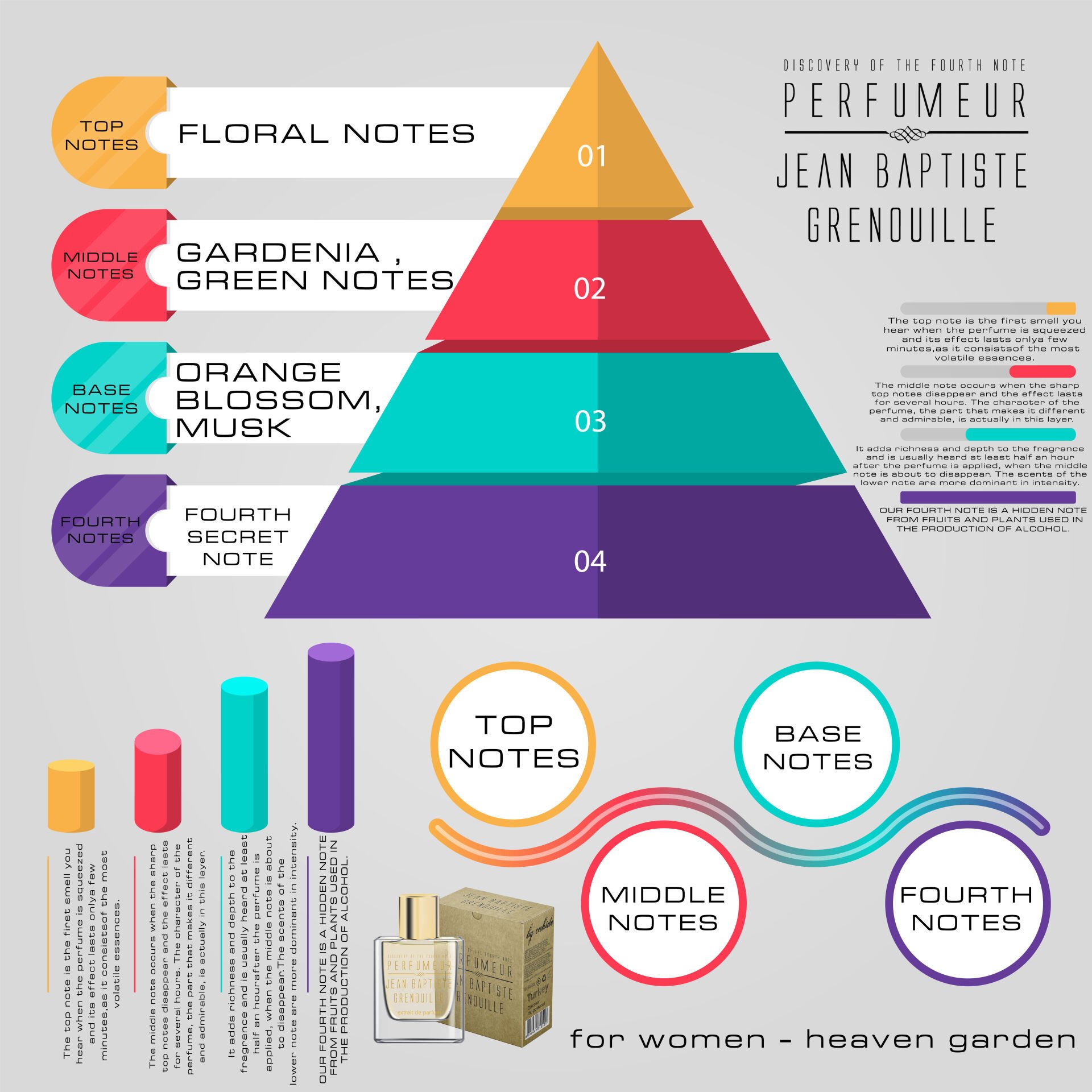 Doğanın yeniden doğuşunu, baharın ilk günlerinde açan çiçeklerin tazeliğini ve cenneti andıran bir bahçenin huzurunu hayal edin. Jean Baptiste Grenouille Heaven Garden, size tam olarak bu hissi yaşatmak için tasarlandı. İlk sıkıldığında taze koparılmış çiçeklerin zarif kokusu, ıslak çimenin çiğ tazeliğiyle birleşir. Ardından gardenyaların büyüleyici çiçeksi notalarıyla zenginleşir ve portakal çiçeği ile miskin tatlı, davetkâr dokunuşuyla muhteşem bir final yapar.