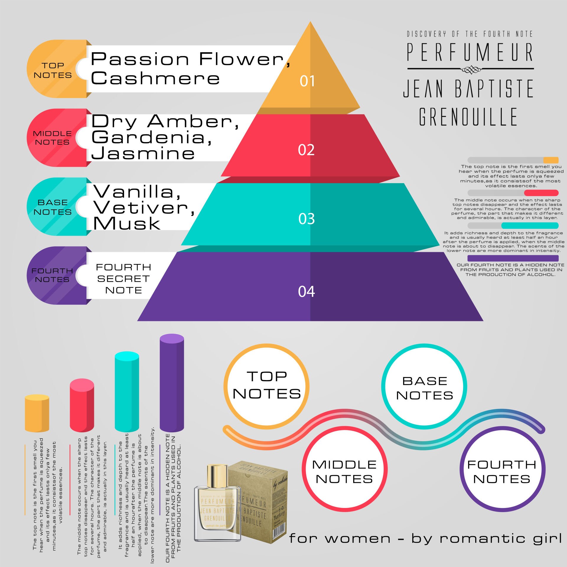 Tatlı, baştan çıkarıcı ve tehlikeli derecede lezzetli… Jean Baptiste Grenouille Romantic Girl, kadınsı cazibenizi şehvetli bir zarafetle birleştiren özel bir parfümdür. İlk sıkıldığında çarkıfelek meyvesinin egzotik tazeliği ve kaşmirin sofistike sıcaklığı sizi sarar. Kalbinde kuru amber, gardenya ve bir tutam yaseminle birleşerek feminen bir derinlik kazanır. Son notalarda vanilya, vetiver ve misk devreye girer; bu da parfüme hem romantik hem de unutulmaz bir kapanış sağlar.